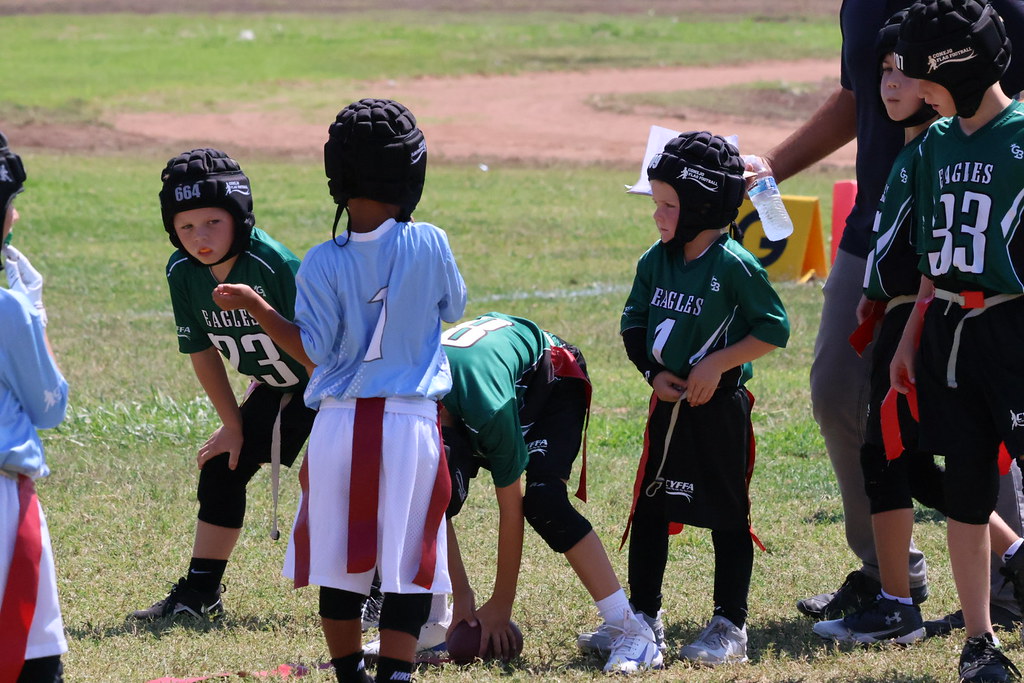 The CYFFA Scrim Division is our youngest division that introduces young athletes to the game of Flag Football. This fun paced division is all about ball movement and field awareness. Played on a smaller field allows the players, coaches and referees to engage the entire game. Coaches are allowed on the field to help position players before the snap of the ball.